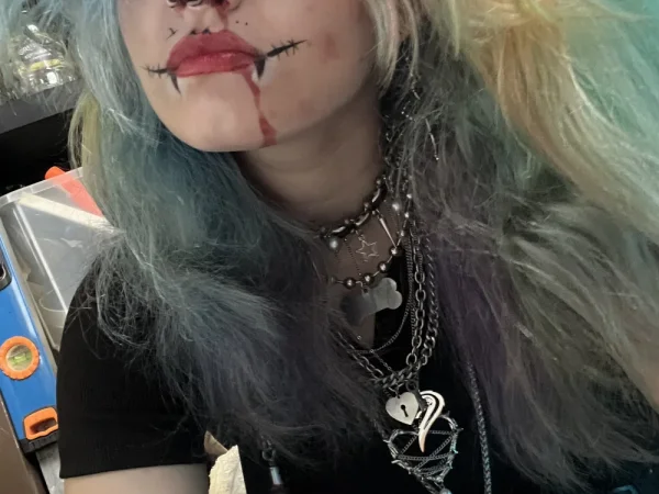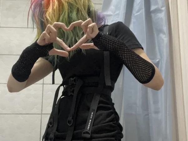 Просто девушка с цветными волосами, неформальным стилем и необычным макияжем, хожу по концертам и тусовкам