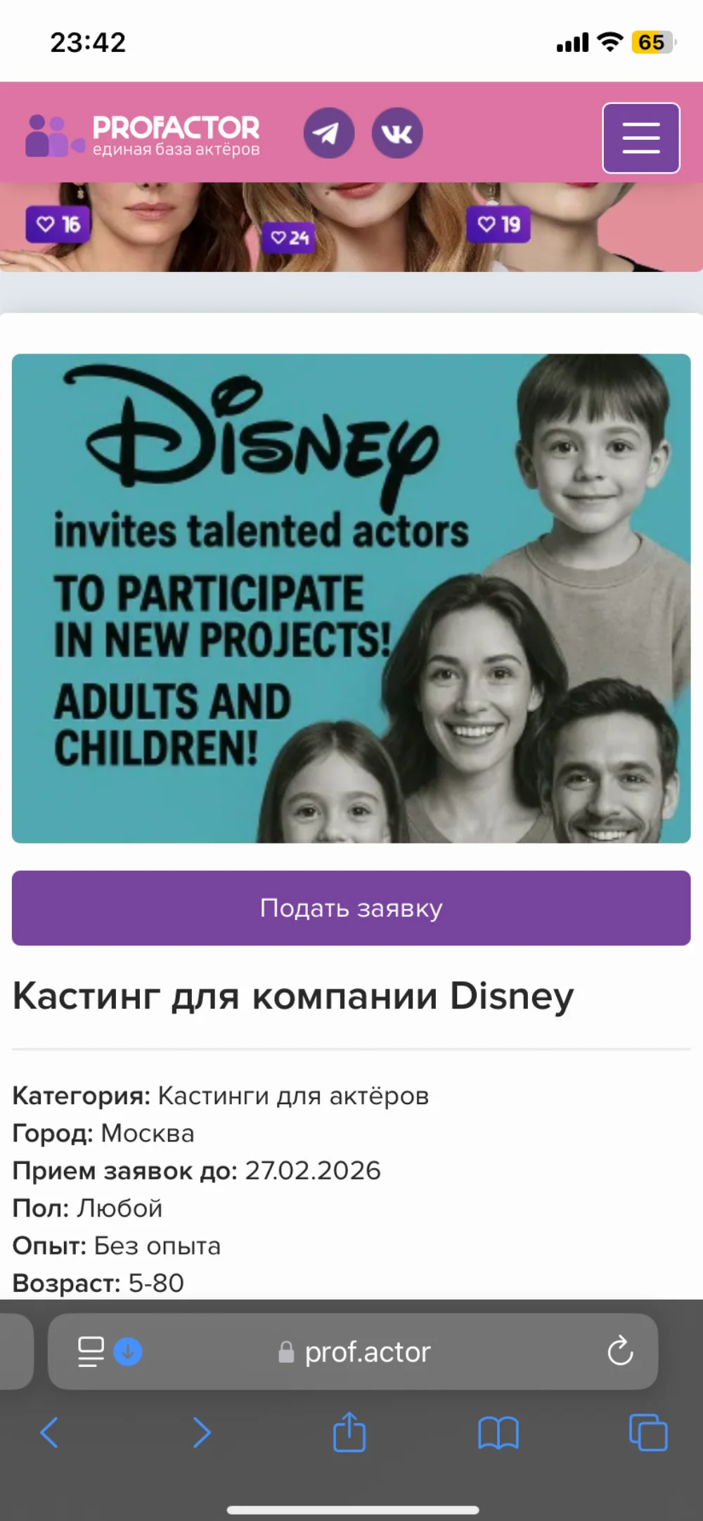 Приглашаются мужчины и женщины для съёмок в рекламных роликах и фотосессиях.