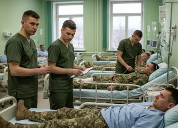 Раненые в госпитале/ военные/ врачи 25-30 лет, короткая военная стрижка, под фор...